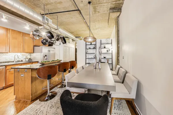 Rarely available at 1000 W Adams is this beautifully maintained, true concrete loft in the heart of the West Loop with a large private outdoor terrace! This oversized 2-bedroom, 2-bathroom condo offers the perfect blend of industrial character and modern comfort, featuring soaring ceilings, exposed concrete, and hardwood floors throughout the main living areas. The "03 tier" condo on this is floor is significantly larger than the "03 tier" condos on other floors thanks to the additional bump out beside the terrace, perfect to use as a den/office/sitting area. The expansive open-concept living and dining space flows seamlessly to a large, private covered terrace-perfect for outdoor dining, entertaining, or relaxing in your own urban oasis. The modern kitchen is equipped with stainless steel appliances (all under 5 years old), including a high-end Thermador range, 42" cabinetry, granite countertops and a breakfast bar for casual dining. The HVAC system and in-unit washer/dryer are just 3 years old (2022)! Additionally, the front door was replaced less than a year ago, offering enhanced security and a fresh, updated entry. The spacious primary suite features a walk-through closet with custom Elfa system organizers, leading to a large en-suite bath. The spacious second bedroom is perfect for guests, a home office, or a roommate setup, with an adjacent full bathroom. A rare perk of this unit is the grand-sized private storage room, providing an abundance of space rarely found in the city. One Tandem (2 car) garage parking spot is INCLUDED in Price! Located in the highly sought-after 1000 W Adams building, residents enjoy full access to top-tier amenities including a stunning rooftop deck with skyline views, a peaceful courtyard, renovated business center, expansive fitness center, 24-hour door staff, a welcoming lobby, electric car charging station, bike room, full-service dry cleaners, and a solid, well-managed HOA. Perfectly situated on a prime corner lot in the West Loop, this home offers the ideal balance of tranquility and accessibility. Non-metered street parking on Morgan and Adams makes coming and going easy, while being just two blocks from Madison Street keeps you close to the neighborhood's vibrant core. You'll be steps from Mary Bartelme Park, Target, Mariano's, Whole Foods, the potential future home to Trader Joe's and Aldi's, the Morgan (Pink/Green Line) and UIC Halsted (Blue Line) 'L' stops, and the iconic Restaurant Row on Randolph. With quick access to the Loop and expressways, commuting is effortless. This is a rare opportunity to own a fully turnkey, move-in ready home in one of Chicago's most sought-after neighborhoods.