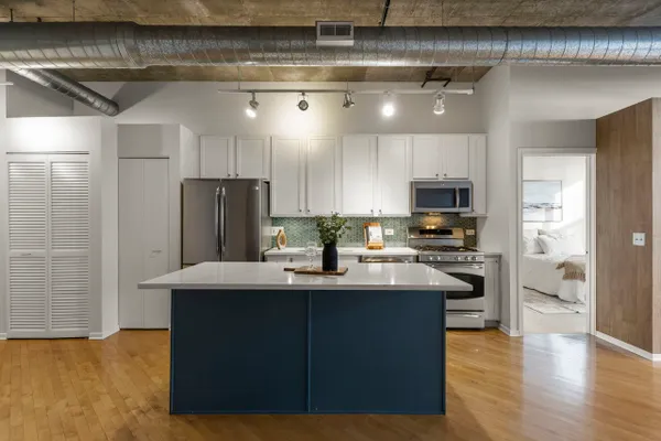 Rarely available gorgeous 2 bedroom 2 bath condo on the most desirable "Outdoor Terrace floor" at the highly sought after 1000 W Adams building! The kitchen is a dream equipped with stainless steel appliances, a pantry and has been recently updated with white cabinetry, new hardware, gorgeous tiled backsplash, and quartz counters. Brand new carpeting in the bedrooms and freshly painted throughout. With an optimal and functional split floor plan, this large open layout provides plenty of room for a dining table in addition to seating around the island. Living room is centered by a cozy gas fireplace with stunning wood ceramic tile surround. Beyond the living room are floor-to-ceiling windows and a sliding glass door leading to your sunny 200SF Private Terrace! Extra large primary bedroom will be your personal sanctuary, easily fits a king size bed with plenty of additional furniture plus a nook for a desk or armiore. It's also fully enclosed with custom built out organizers in the walk through closet which leads to the large primary ensuite. The 2nd bedroom with custom built out closet organizers is ideal for guests or a home office. Other highlights of this fantastic condo include In-unit Laundry, an additional fully-enclosed grand-sized Private Storage room, and 2 SINGLE Premium indoor attached garage parking spaces all Included in Price!! This home is located at the coveted 1000 W Adams building, which is nestled on a spacious corner lot in the most sought-after location in the West Loop! Solid HOA with healthy reserves. Full amenity building offers a rooftop deck with incredible skyline view, courtyard, renovated business center, expansive fitness center, full service dry cleaners, bike room, electric car charging station, high speed internet, 24hr door staff & stunning lobby ready to welcome you home. This is the perfect central location within the West Loop with easy, non-metered parking on Morgan and Adams and conveniently only 2 blocks from Madison St, but much quieter! Yet, only steps away from the beautiful Mary Bartelme Park, Target, Mariano's, Whole Foods, the Morgan (Pink/Green) 'L' stop or the UIC Halsted (Blue) 'L' stop and West Loop's famous Restaurant Row on Randolph renowned for its thriving culinary scene, with award-winning restaurants. Proximity to public transportation and major highways provides easy access to explore the best of what Chicago has to offer! Don't miss this opportunity to own in the heart of one of Chicago's hottest neighborhoods!